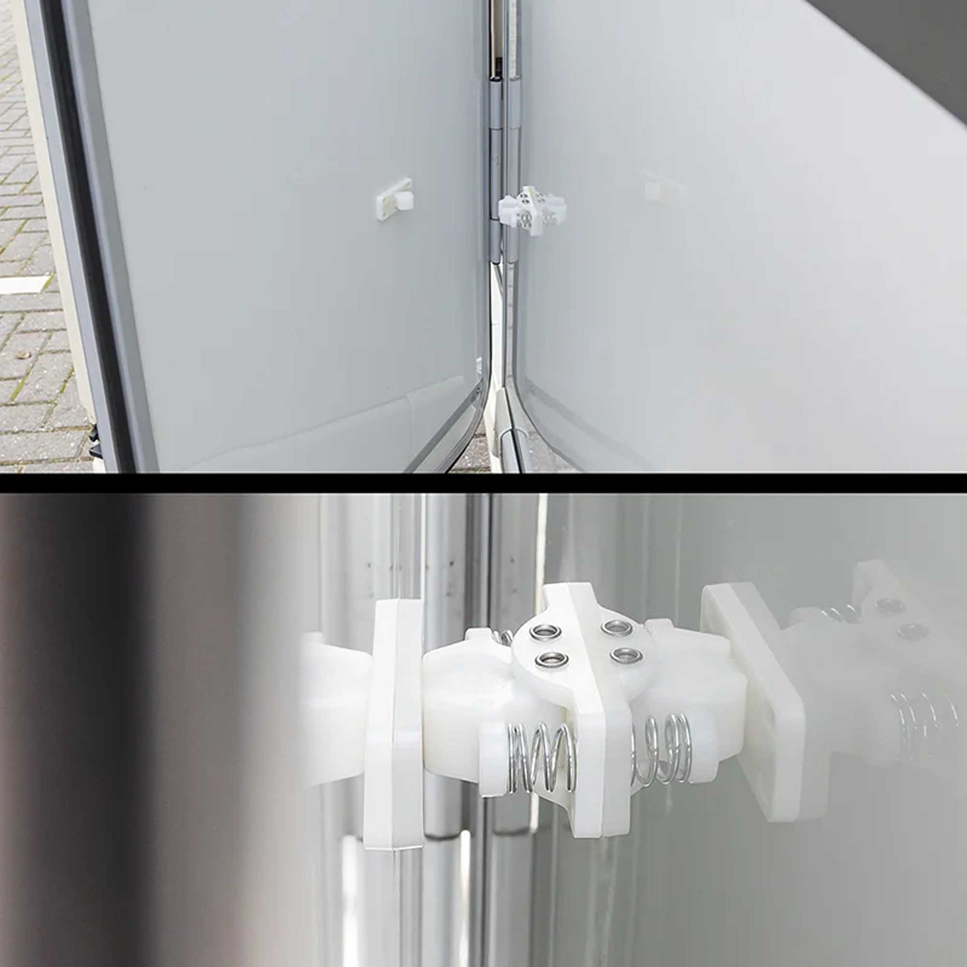 Die einfache Installation macht diesen Türfänger zu einem praktischen Zubehör für jeden Besitzer von Wohnwagen, Wohnmobilen oder Kofferanhängern.