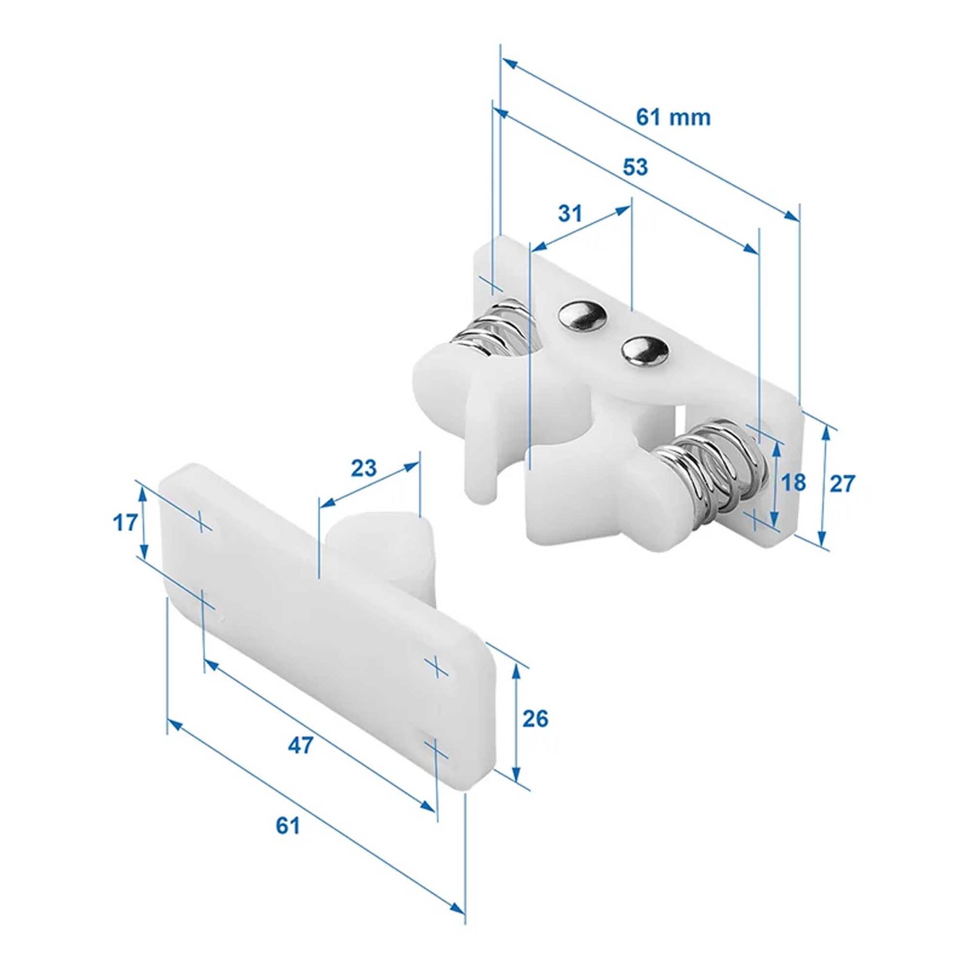 Die Anwendungsbereiche dieses Türfängers sind vielfältig und umfassen Wohnwagentüren, Wohnmobiltüren sowie Türen von Kofferanhängern und Schränken.